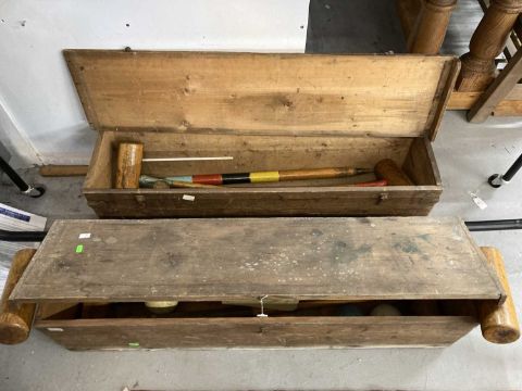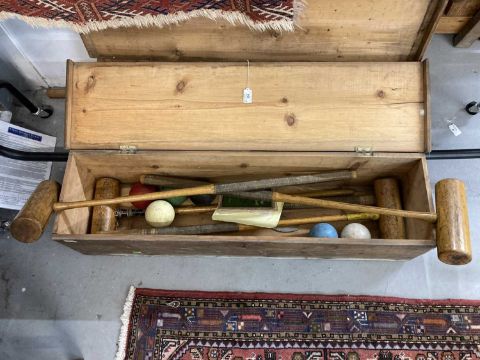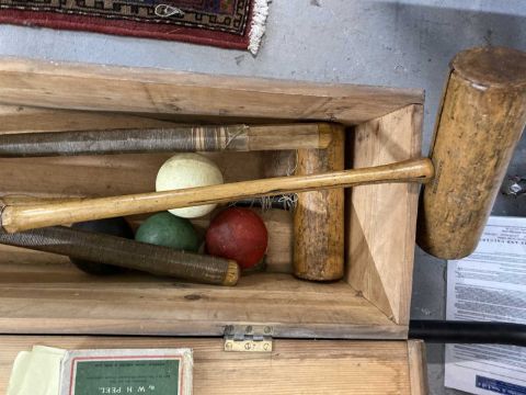 Toys and games: Croquet 6 Ramsbottom mallets in two cases, balls and some hoops and a Willis Setting and How to Play rules book.