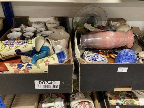 Ceramics: Aynsley, Isla, Charlotte Rhead, etc. Jugs, ginger vases, plates, cups, etc. (2 Boxes)