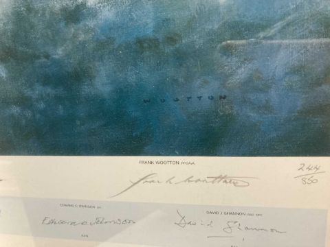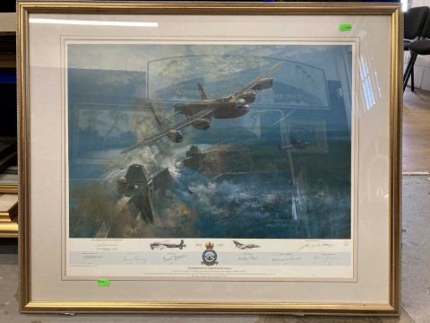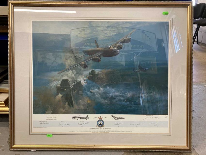 Prints: The Dambusters by Frank Wolton signed Dambusters print. Limited edition 244/850 1943- 1993 with 8 signatures framed under glass