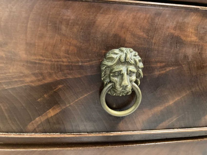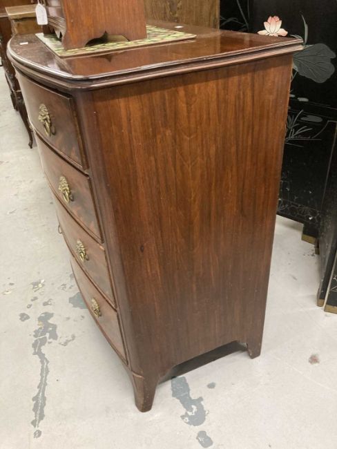 Furniture: 19th century mahogany bow fronted chest of drawers four long graduated drawers rising on splayed supports. 98cm x 100cm x 53cm.