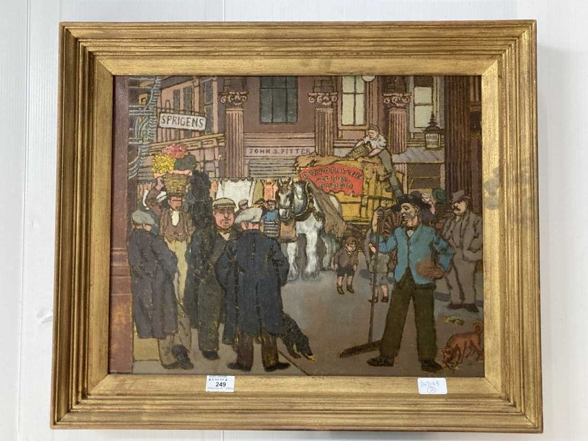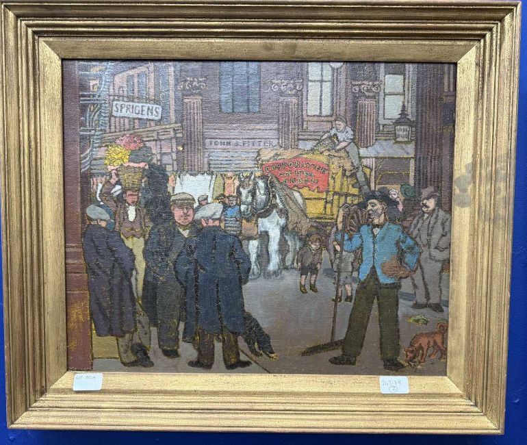 Powys Evan (British School 1899-1982): "A busy morning", Leadenhall Market London. Oil on Canvas 16½ins X 20½ins. 42cm. x 52cm.