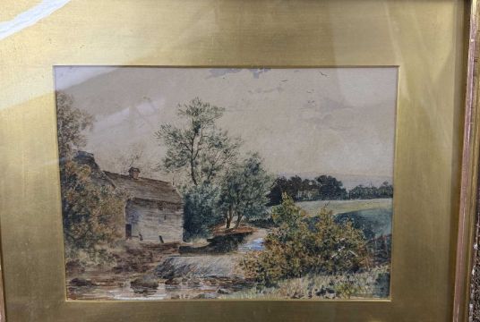 Fraser Selby: Watercolour a valley stream in North Wales together with another watercolour of a landscape with ruined cottage to the fore, unsigned, both framed under glass, largest 50cm x 46cm. (2)