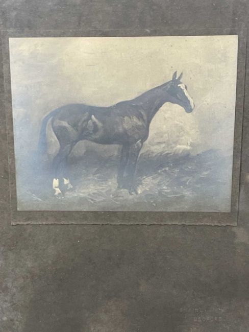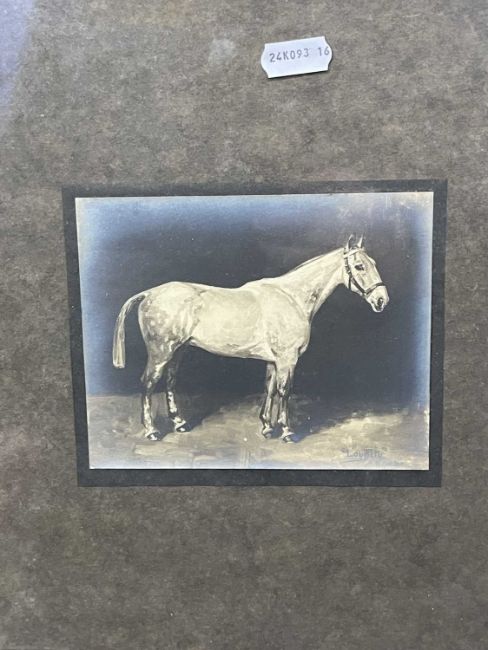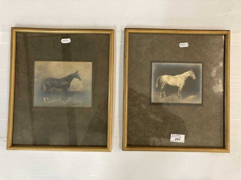 Art: A pen and ink study of a horse, titled 'Loyalty', signed AH Coates; together with another similar. Both framed and glazed, 33.5cm by 29cm.