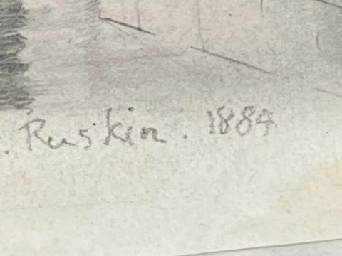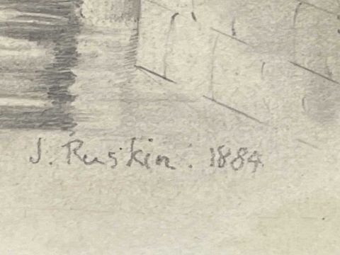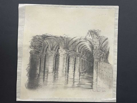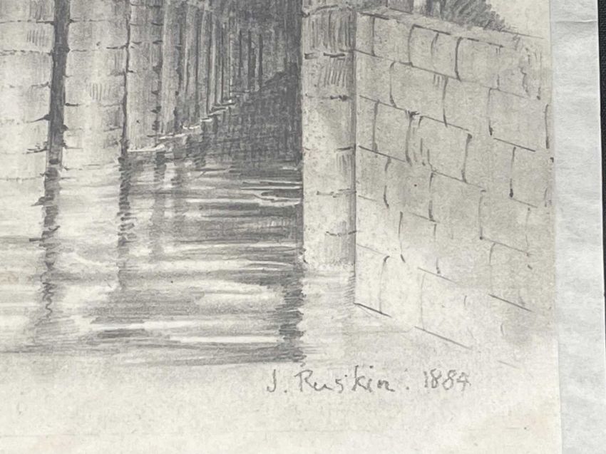 Art: John Ruskin 1819-1900 pencil sketch of the underground basilica cistern in Istanbul 7¾ins x 7½ins, signed bottom right.