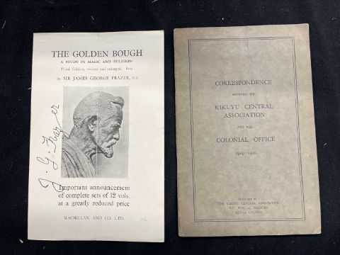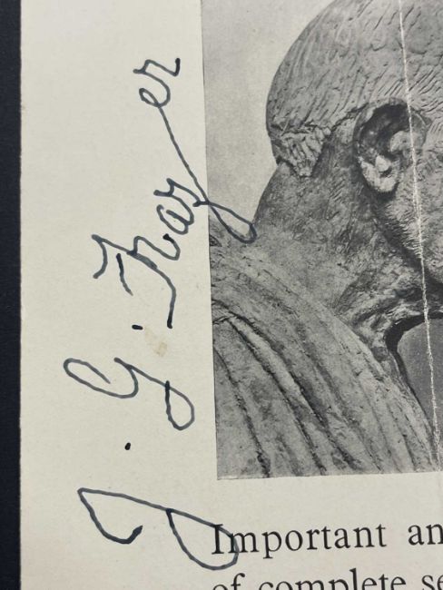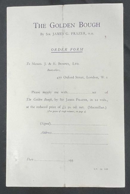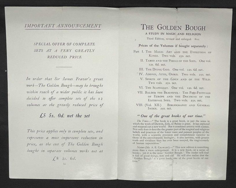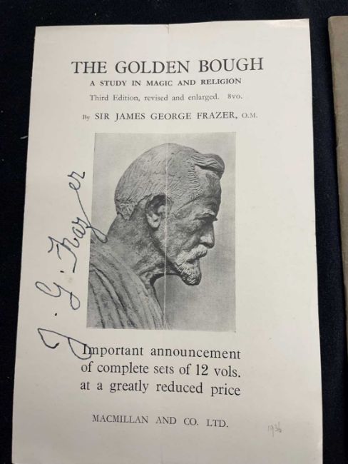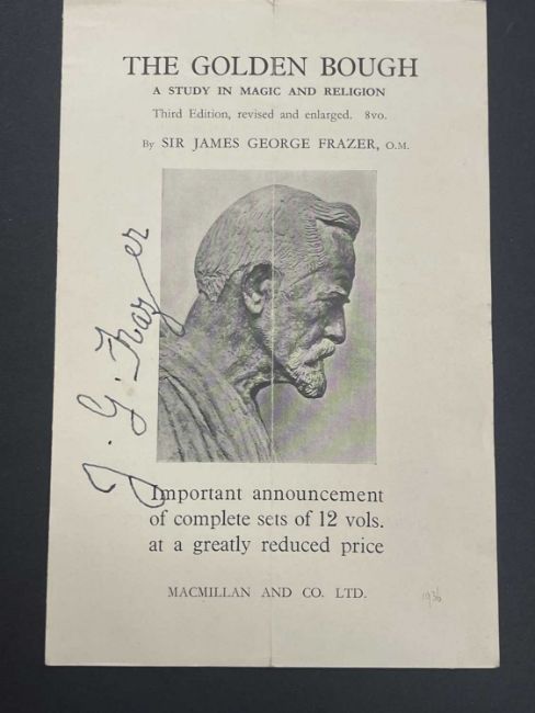 The autograph pamphlet released advertising the release of the Golden Bough in 12 volumes signed by J.G. Frazer the author of the works.