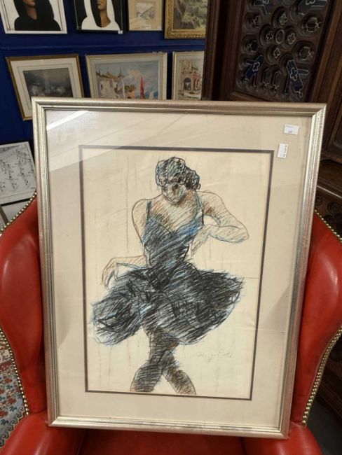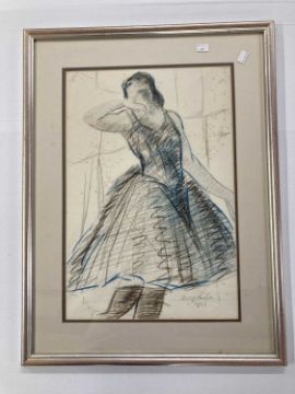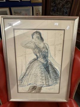 George Poole (British 1915-200): Mixed media a pair of ballerinas 'Dancer 1' and 'Dancer 3' c1947-49, both signed in crayon, framed under glass, overall size 56cm x 74cm.