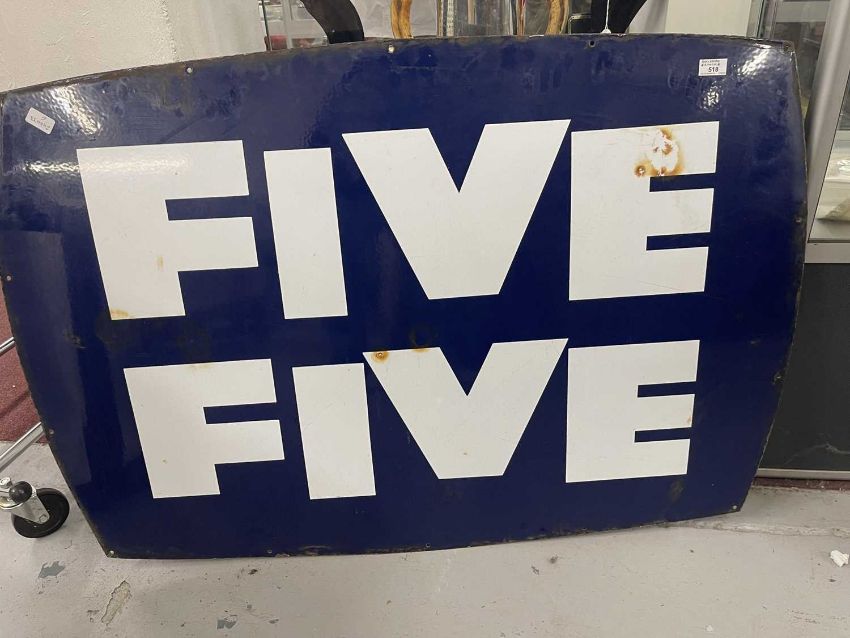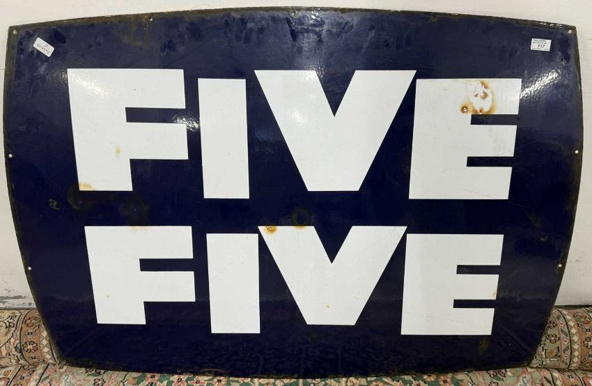 Advertising: Enamel Five Five sign. 1.2m x 85cm.