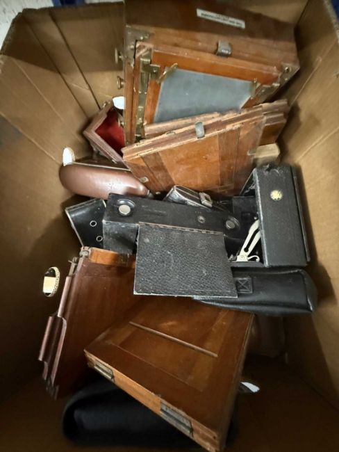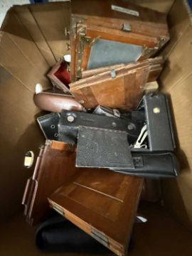 Photographic Equipment: Mixed mahogany and brass cameras including a Lancaster 1890 Instantograph (half plate), Kodak autographic, and various others.