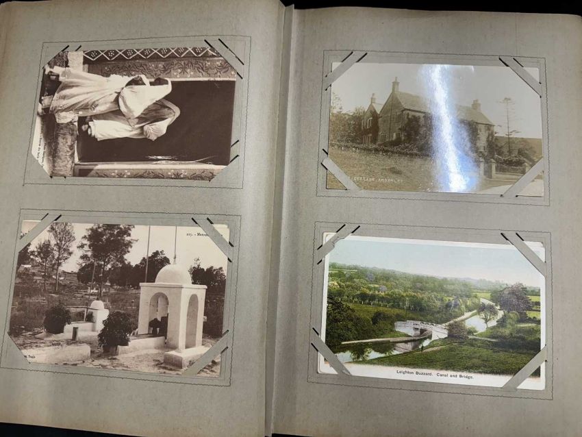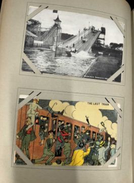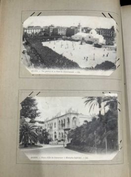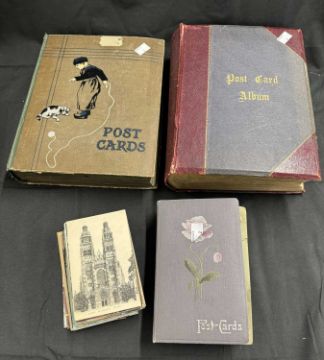 Postcards: Album containing many North African including Egyptian types and scenes, fox hunt in Biarritz, horse fair in Barnet, electric train smash Ramsgate 1905, etc. A second album of similar North African cards, Venice, cartoons, actors and actresses, etc. A small album mainly topographical and approx. 50 loose.