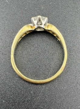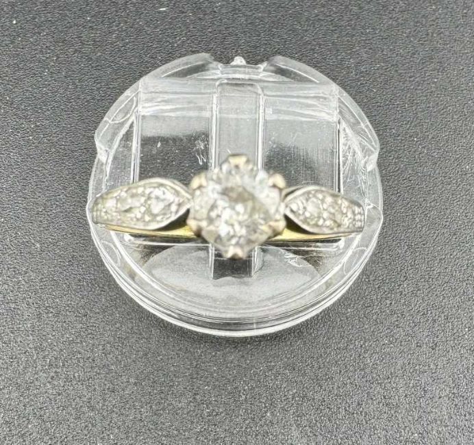 Jewellery: Ladies 18ct white gold diamond ring, a central 0.5ct diamond flanked by smaller stones, ring size P. 2.8g.