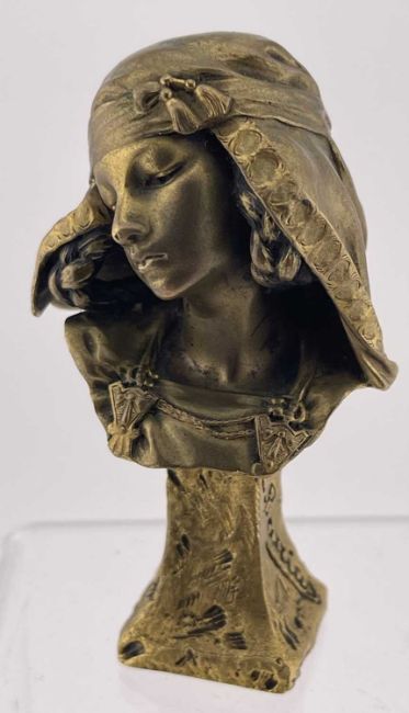 Lous Emest Barrias (1841-1905) French 'Jeure Fille De Bon Saada' gold patterned bronze signed with a foundry mark on the reverse.