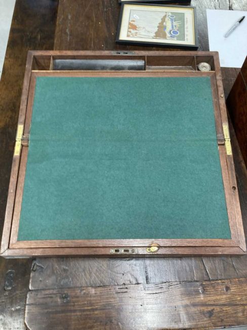 Furniture: 19th century mahogany writing box with fitted interior.