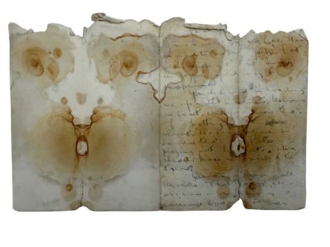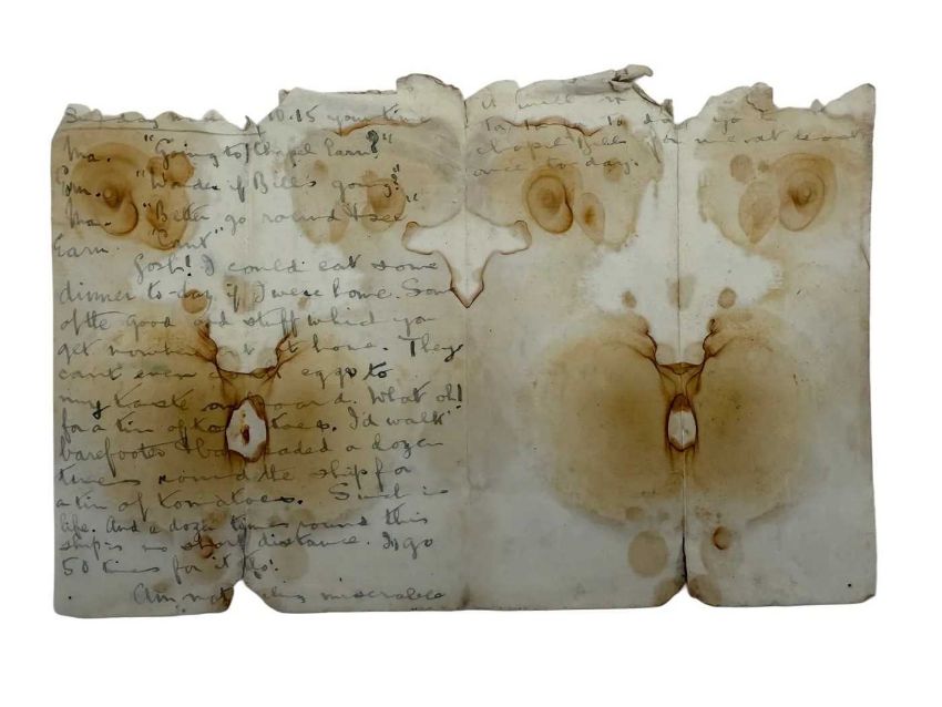 R.M.S. TITANIC: Ernest Tomlin Collection. Handwritten note by Ernest bearing significant signs of water immersion that was recovered from his pocket book that travelled on Titanic with him. 9ins x 5ins.