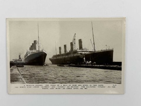 R.M.S. TITANIC: Walton of Belfast real photo postcard of Titanic and Olympic.