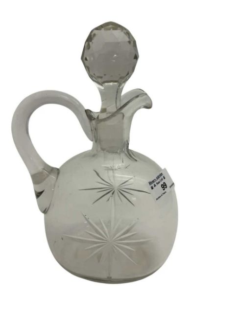 WHITE STAR INTEREST: 20th century crystal claret jug and stopper bearing later applied burgee, 26cm.NB These items are for decorative use only. They are replicas and not original White Star Line pieces.