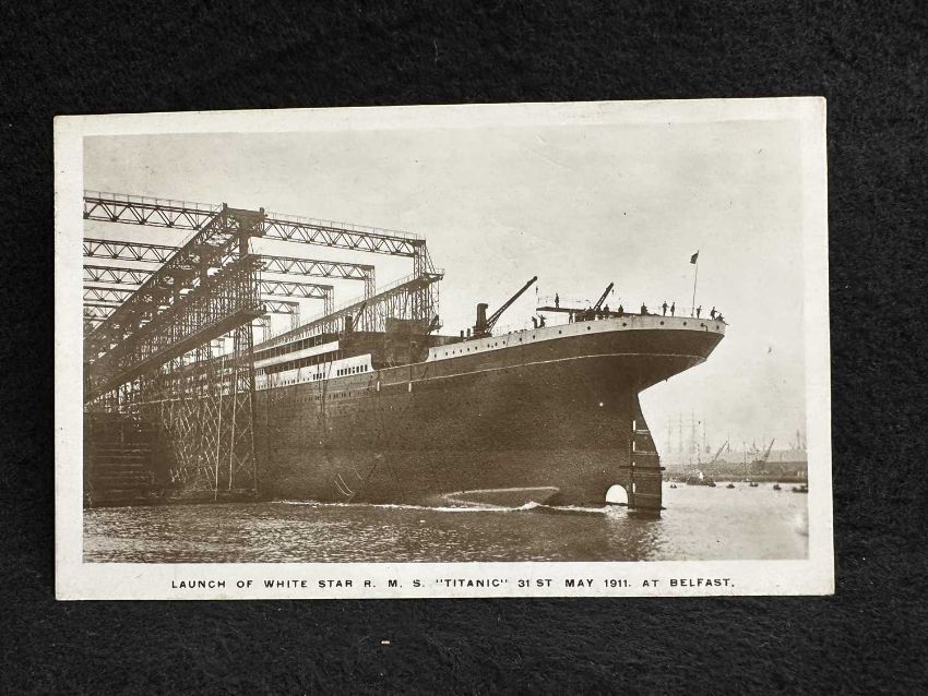 R.M.S. TITANIC: Rare signal series real photo postcard of Titanic's launch.