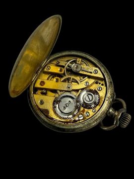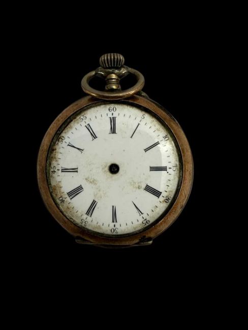 R.M.S. TITANIC: A partly gilt silver and brass open-face pin-set pocket watch, white enamel dial with Roman numerals and outer Arabic numerals, case decorated with turtle doves. Diam. 32 mm. Hands missing, worn gilding. Personally owned and found among the possessions of Danish Second-Class Passenger Hans Christensen Givard, Body No. 305, who perished in the sinking of Titanic in 1912.Hans Givard and his two friends, farm worker Einar Windeløv and blacksmith Martin Ponesell headed for America aboard the Titanic leaving Southampton on April 10th 1912. At that time, Givard was a well-dressed young man of 27 who, consistent with his social standing, was travelling second class. When the disaster occurred on the night of 14th April and the Titanic sank, the adventure came to an abrupt end for the three friends, all of whom were lost in the sinking. Givard’s body was recovered from the cold North Atlantic and later buried at Fairview Cemetery in Halifax, Canada, on 10 May 1912.The listing in the inventory of those lost states: “No. 305 2nd class passenger. Male, estimated age 36. Very fair hair and moustache. Dark brown striped suit, black overcoat, white shirt labelled ‘D.M.’, no socks, a white shoe and pink underpants.” In the pockets were found a savings book, some keys, some cash in a wallet, silver watch, compass, a passport issued by the Consulate General in Buenos Aires and a home town certificate from Vorde, Fiskbæk and Romlund Parish Municipality issued on 14 August 1911. The gilded ladies’ pocket watch up for auction was also found in Givard’s pocket and bears traces of salt water corrosion. All his belongings were returned to his brother Hans Christian Christensen Givard in Denmark, and it is his descendants who have now consigned the watch to auction. The ill-fated story of Hans Christensen Givard directly inspired curator Jesper Hjermind and his niece, journalist and US resident Mette Hjermind McCall, to write the book “Titanic – De Danske Fortællinger” (Titanic – The Danish Stories), where the pocket watch is mentioned. It was also exhibited by Claes Goran Wetterholm, the leading authority globally on the Scandinavian element of the Titanic story at “Titanic – The Exhibition” in the Hans Christian Andersen Castle at Tivoli in Copenhagen in 2012. Several links are available on YouTube of media coverage in 2012 surrounding the watch and its exhibition in Copenhagen.