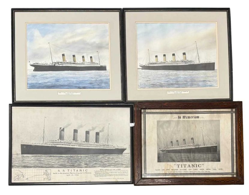 R.M.S. TITANIC: A mixed collection of reproduction and reprinted Titanic and liner related pictures and prints. (11)