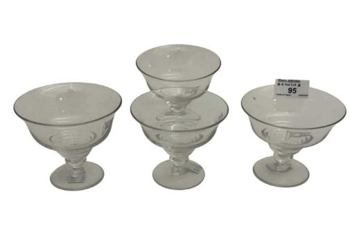 WHITE STAR INTEREST: 20th century crystal set of four sundae glasses bearing later applied burgee, 9cm.