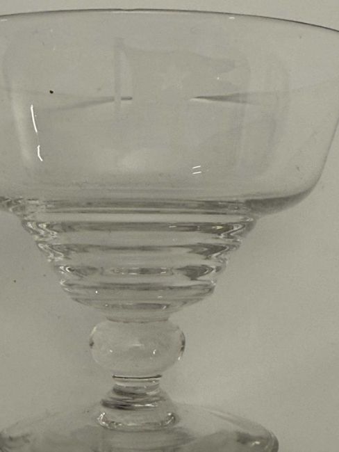 WHITE STAR INTEREST: 20th century crystal set of four sundae glasses bearing later applied burgee, 9cm.NB These items are for decorative use only. They are replicas and not original White Star Line pieces.