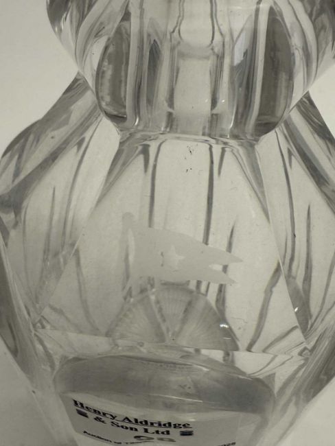 WHITE STAR INTEREST: 20th century crystal decanter and stopper bearing later applied burgee, 30cm.NB These items are for decorative use only. They are replicas and not original White Star Line pieces.