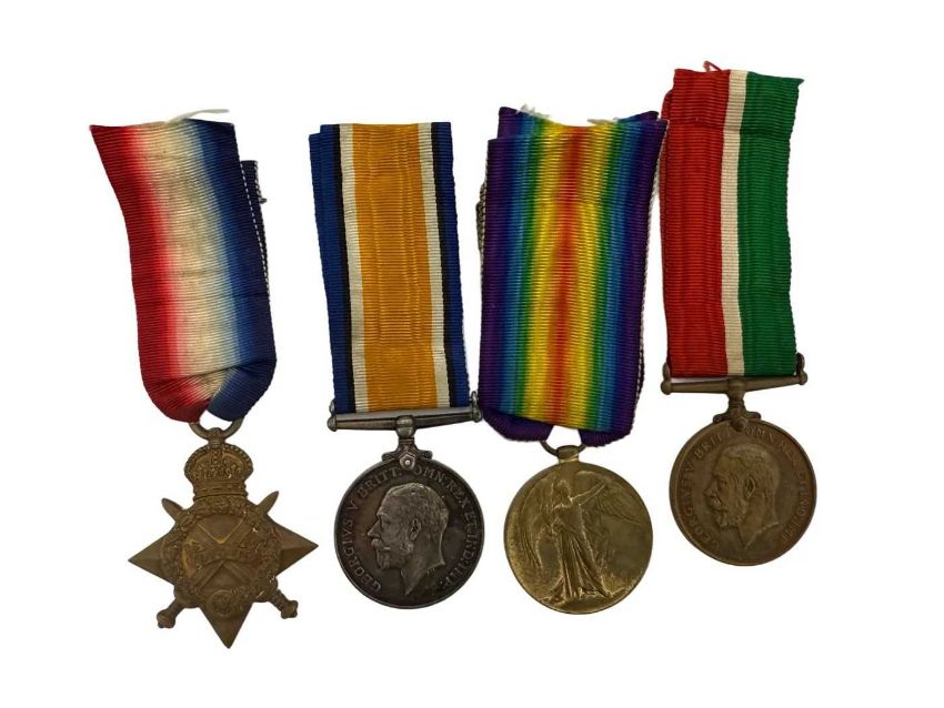 R.M.S. TITANIC/MEDALS: An extremely rare World War One group of medals to Titanic First-Class Steward Edneser Edward Wheelton, the group comprises 1914/15 trio and Mercantile Marine Medal. They are named E. Wheelton STO MFA and are accompanied by a folder of research. Mr Wheelton was called to give evidence at the US Enquiry, some of which is below and he later confirmed at the end of his evidence that there was no boat drill on April 14th.When he signed on to the Titanic on 4 April 1912, Edneser gave his address as Norwood House, Bellemoor Road, Southampton. His previous ship was the Olympic and as a First-Class steward, he received monthly wages of £3, 15s. On Sunday, 14 April, Wheelton recalled that there had been no lifeboat drills as was customary on other ships; he had been on watch but had gone to bed and was asleep at the time of the collision. He was awakened around 11.45 pm by a shock, which he attributed to the ship dropping a propeller, so he got out of bed and peered out of one of the portholes but saw nothing amiss but noted how cold it was. He went to the door of his quarters and spoke to some passing crewmen, but apparently receiving no news to be worried about, he went back to bed. Not long after, he was again roused by someone shouting something about "watertight doors," so he again left his bed and went to the companionway, where he soon became aware of orders to get his lifebelt and make his way to his boat station. He hurriedly dressed, throwing on his clothes over his pyjamas, topping this off with an overcoat and slippered feet; by the time he reached the boat deck, they were letting out a lifeboat, which he believed was his assigned lifeboat number 5 (it was number 7) and he assisted in its lowering. Following the launch of boat 7 Wheelton was ordered to go to the food stores to retrieve biscuits. On his way, he spotted Thomas Andrews on B-deck who was busying himself by checking cabins for anybody still in them. He returned to the boat deck by passing through the dining saloon and reception room and up the grand staircase and returned to the boat deck in time for the preparation of another boat to be lowered (boat 5). During this boat's preparation, Wheelton was stood just behind Mr Lowe when the latter rebuked Mr Ismay for getting in the way. Wheelton would assist in the lowering of other starboard boats, presumably boat 3 and definitely boat 9, and testified that Ismay lingered around all the boats that he was working at. Following the launch of boat 9 Mr Murdoch ordered steward Wheat down to A-deck; taking Wheelton by the arm Murdoch ordered him to do the same; a large crowd of women and children having been escorted down to A-deck by stewards. Wheelton and Wheat descended to A-deck where boat 11 had been lowered to receive passengers; they stepped into the boat and began filling it with women and children and with what Wheelton estimated to be around 8 or 9 crew, mainly stewards. One woman caused a fuss at the boat and had to be manhandled to get in. With the boat heavily laden Wheelton shouted up to Murdoch that the boat was full; Murdoch then asked him if he had any sailors in the boat but there were none so he ordered two sailors to jump into the boat, Brice and Humphreys, the latter assuming command. Wheelton described the descent to the ocean as smooth but the lifeboat had difficulty releasing itself but eventually was broken free. The lifeboat then pulled out to what he estimated was around 300 yards from the ship, no easy feat because the boat was overloaded and the crew at the oars found it difficult to row in the cramped space, often accidentally striking others in the process. Wheelton recalled seeing a light in the distance that seemed close but despite their best efforts they did not seem to be able to get close to it. A woman close by him in the lifeboat was so cold that he gave up his coat to her.He was later called to give crucial testimony with regard to lifeboats to the US Inquiry into the sinking, the following is a partial transcript:“Senator NEWLANDS.Go on, and in your own way state what occurred on the steamer Titanic after the collision with the iceberg?Mr. WHEELTON.I had just come off watch. I went to bed. I was awakened between 10 minutes to 12 and a quarter to 12 by a shock. It felt as if it was the dropping of a propeller or something like that. I got out of bed. I lifted the port and I looked out of the port. Everything was calm. It was very cold. I went to the door of my room and spoke to some of the men, and then I got back into bed again. I was roused next by someone shouting, "watertight doors." I came outside. The order was, "Get your lifebelts. Get up to boat stations." I went back. I put my pants on over my pyjamas, put my slippers on, and my overcoat. I went down to the deck. They were just getting away No. 5 then. I assisted in getting away lifeboat No. 5. I was ordered to the storeroom. I went down to the storeroom. The way I went to the storeroom was down B deck, along B deck. As I went along B deck I met Mr. Andrews, the builder, who was opening the rooms and looking in to see if there was anyone in, and closing the doors again. I went along B deck and used what we call the accommodation staircase, which goes through the ship, and is used by the stewards. I went down to the storeroom and I got a bottle of biscuits, and I carried them up to the main dining room, through the reception room, up the main staircase. I got onto the deck; the boats had gone. They were working at No. 7. I meant No. 5 had gone. I went to No. 7 and assisted in lowering No. 7. I think it was No. 7.Mr. Lowe told Mr. Ismay to get to hell out of it, because I was the steward who stood back of Mr. Lowe. We worked at No. 7 and got her down, and then No. 9. Mr. Murdoch was there, and Mr. Ismay stood up by all of the boats I saw get away. I walked along when No. 9 went, and Mr. Murdoch, the first officer, turned around. He sent the assistant second ste