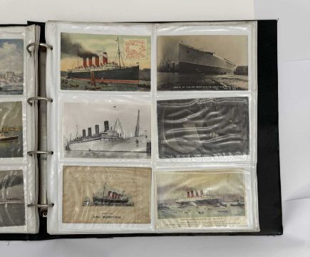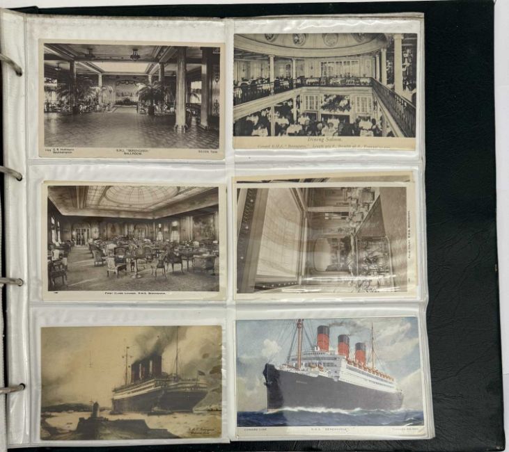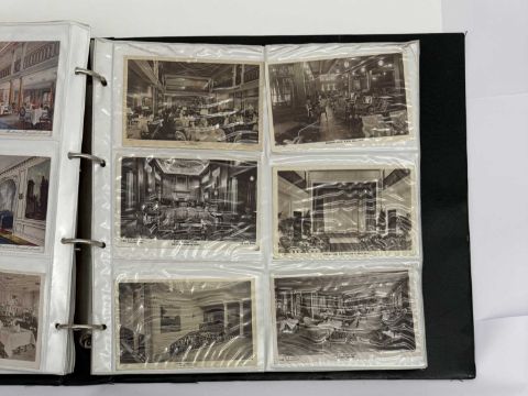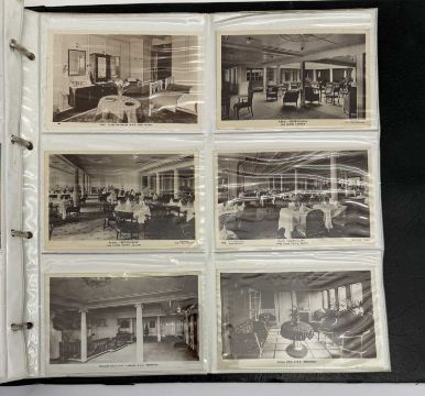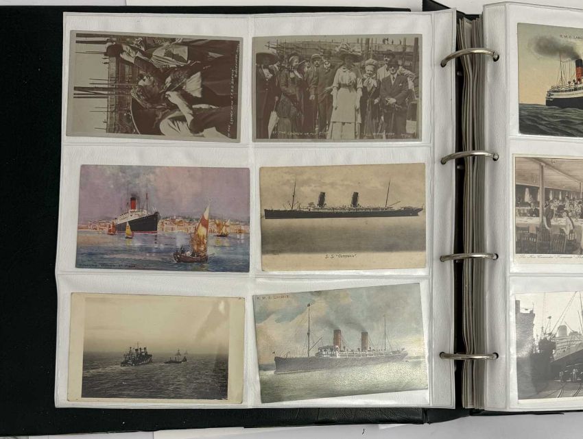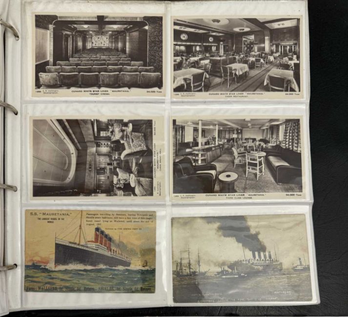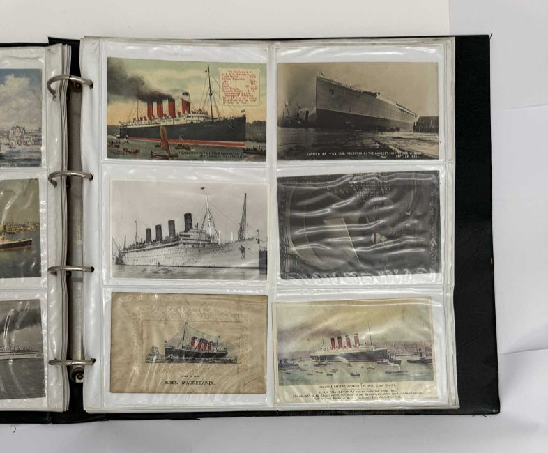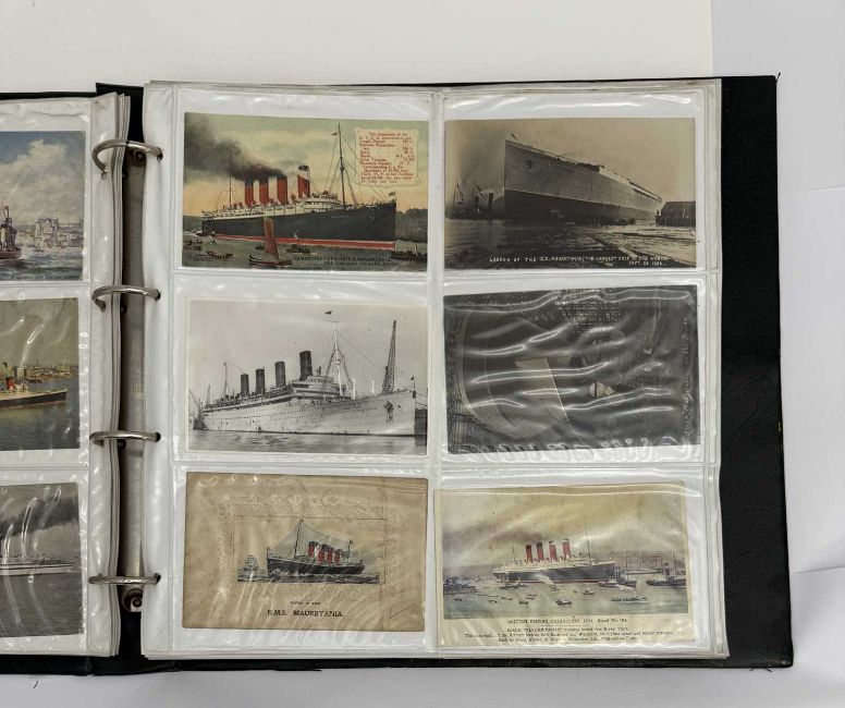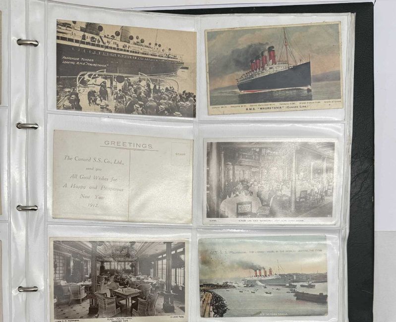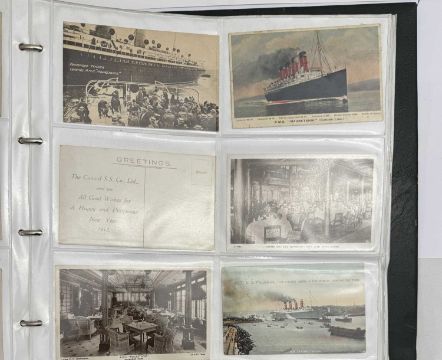 OCEAN LINER: Large collection of Cunard postcards ranging from Mauretania and Lusitania to Queen Elizabeth 2. Approximately 290 cards.