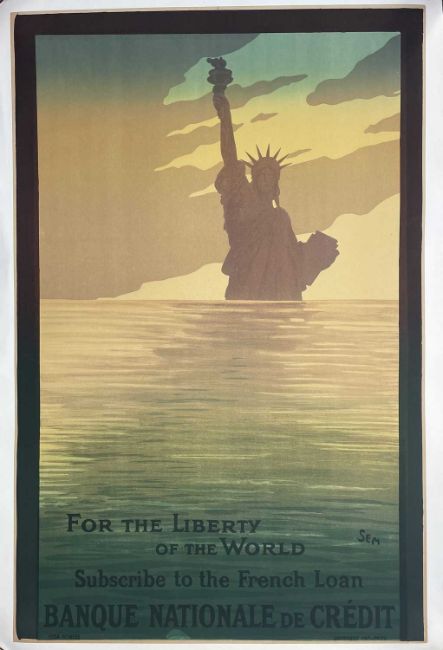 TRAVEL POSTERS: Banque Nationale De Credit Statue of Liberty by SEM (Georges Goursat 1863-1934), another iconic image from a legendary artist. 46ins. x 30ins.