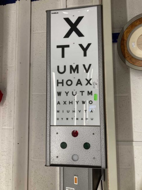 Optical: a Hamblin eye test light box, complete with framework. Overall height 80cm.