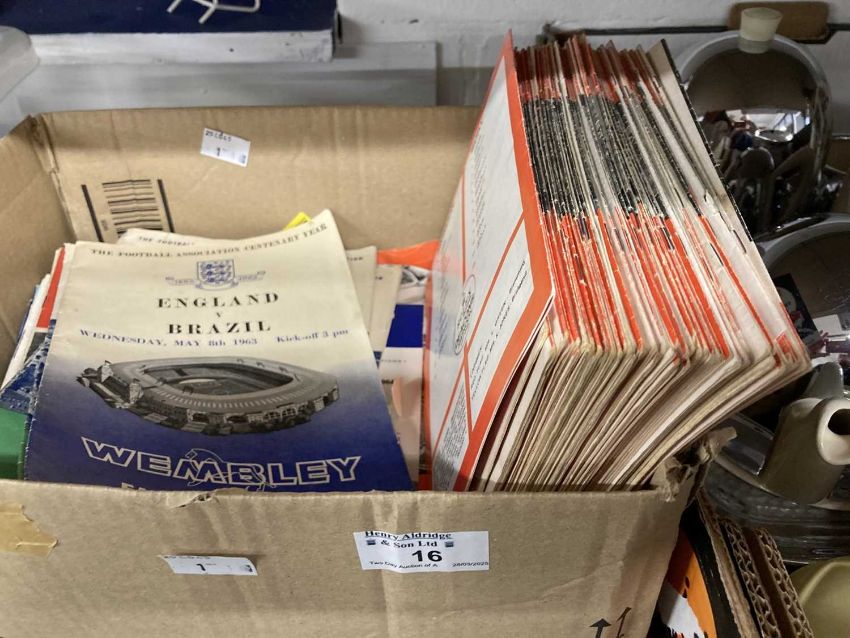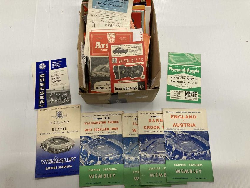 Sporting Memorabilia: Sports event programmes to include 60+ Swindon Town programmes from 1960-63, five Wembley Programmes including England V's Brazil May 8th 1963 plus a small number of other team programmes. Plus fourteen racecards from various course & speedway programmes & other related ephemera.
