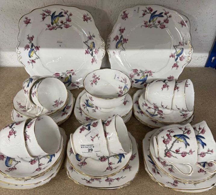 Ceramics: Royal Albert blossom pattern 1927/28 comprises 2 x bread & butter plates, 12 x tea plates (1 A/F), 10 x cups, 12 x saucers.