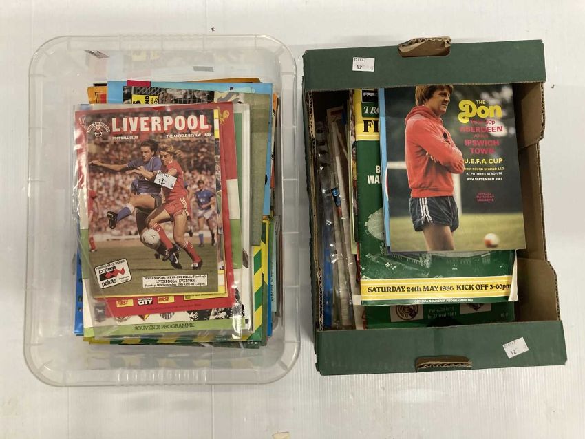 Football Memorabilia: 1970s-1990s Club Match Day Programmes Divisions 1-4 including Manchester Utd and City, Liverpool, Everton, Ipswich, Norwich, West Ham, Arsenal, Tottenham, etc. Club Cup competitions including FA Cup, League Cup, UEFA Cup, European Cup, etc. More than 100 programmes both British and European clubs 1970s-90s.