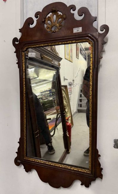 Furniture: George III mahogany fret mirror, circa 1800 - 1820, Vauxhall plate with gilt slip, height 110cm x 65cm.