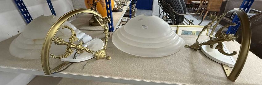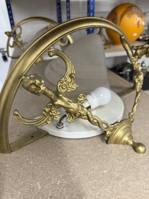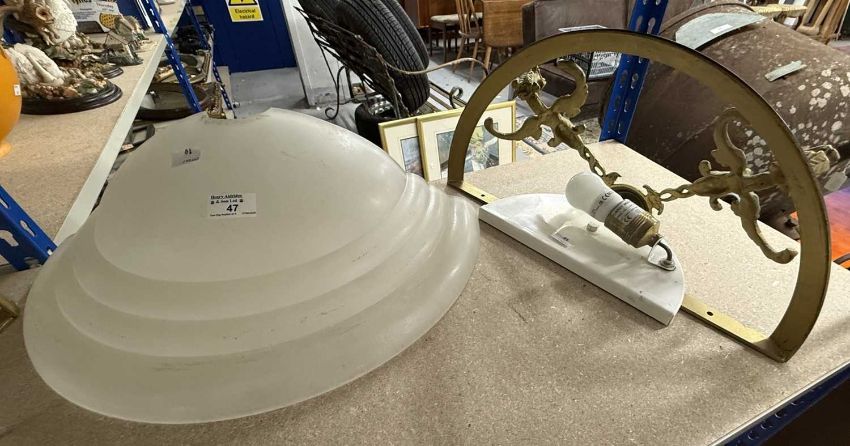Lighting: Brass wall lights decorated with flying dragons, complete with opaque glass shades.