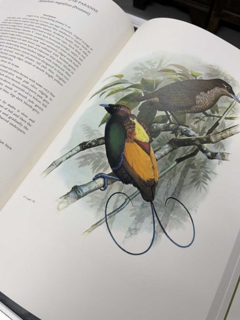 Books: Natural History, Birds first edition The Birds of Paradise and Bower Birds, by William T. Cooper (illustration) and Joseph M. Forshaw (text), first published 1977 by William Collins, Sydney, cloth front and back boards with illustrated dust cover, within purpose made folio case.