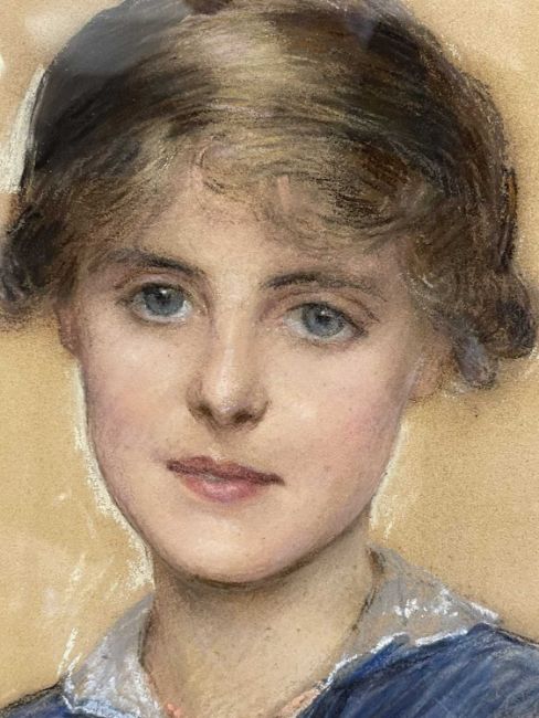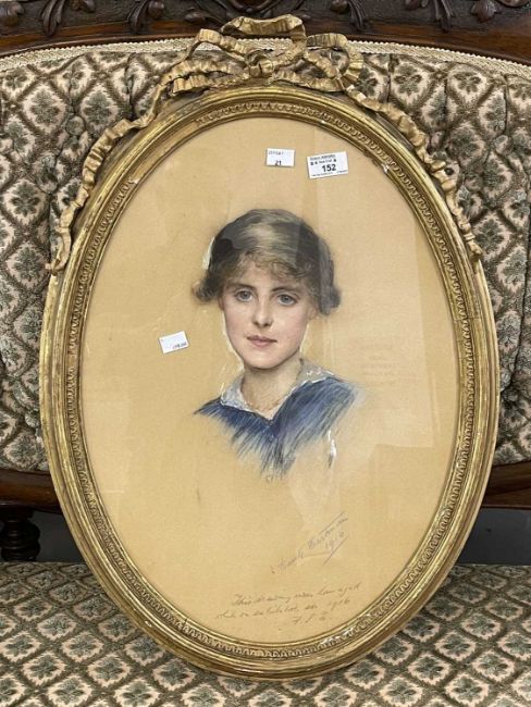 Frank Samuel Easterman (1878-1964): Pastel portrait of Dorothy Chance dated 1916, oval frame, gilt and glazed, 53cm x 38cm.