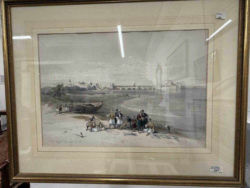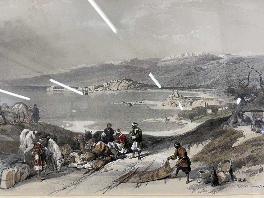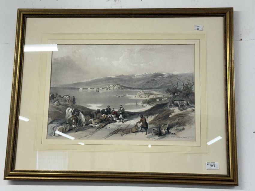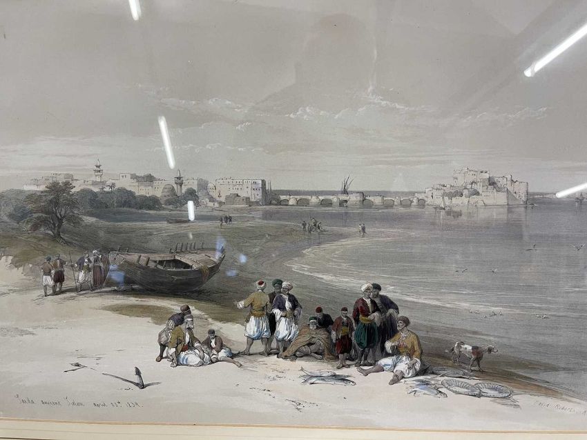 David Roberts RA RBA (1796-1864): A pair of framed lithographs of Egypt and the Holy Land contemporary hand colouring, a view of 'Sidon Looking Towards Lebanon' and 'Sarda Ancient Sidon', both 52cm x 37cm.