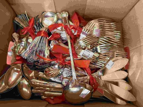 Platedware: Collection of silver plated flatware, mainly Kings pattern.