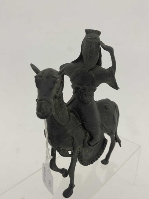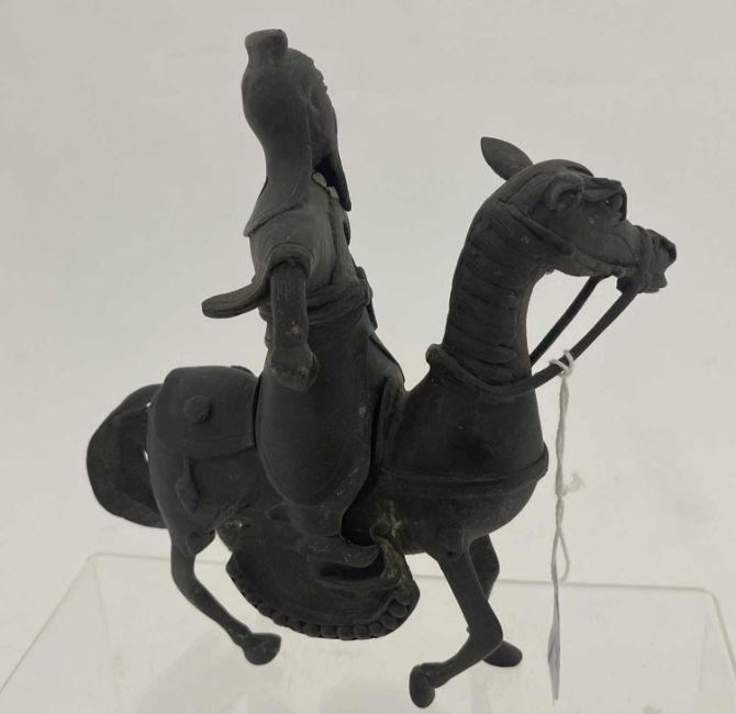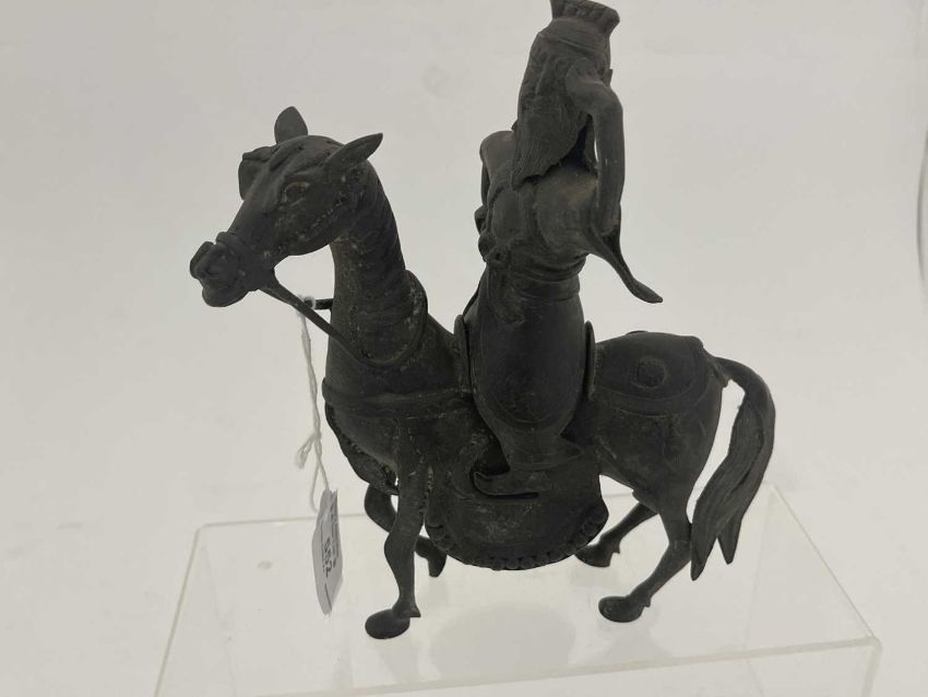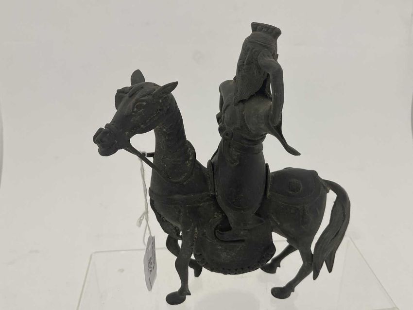 Decorative Arts: 19th-century Chinese bronze censer figurine on horseback, possibly General Guan Yu, 48ins.