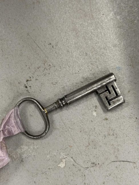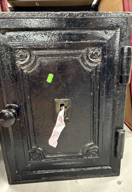 Metalware: 19th-century iron safe with key, decorative, no maker's mark.16ins x 14ins x 21ins.