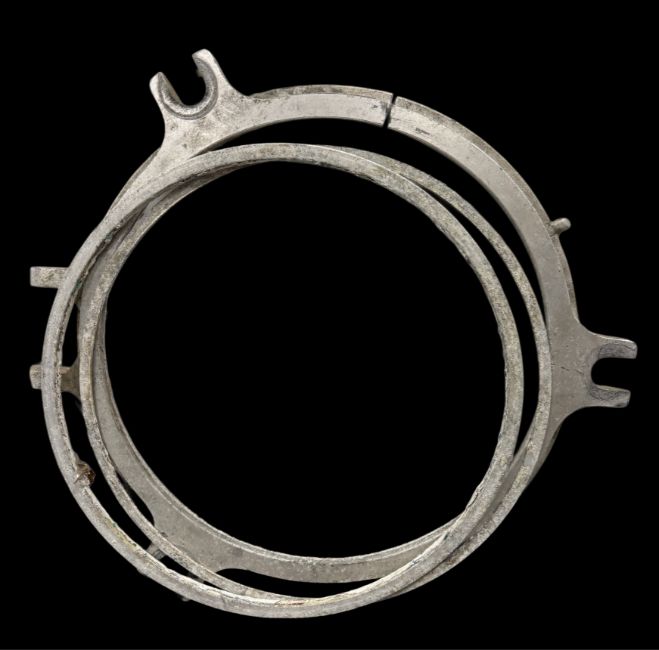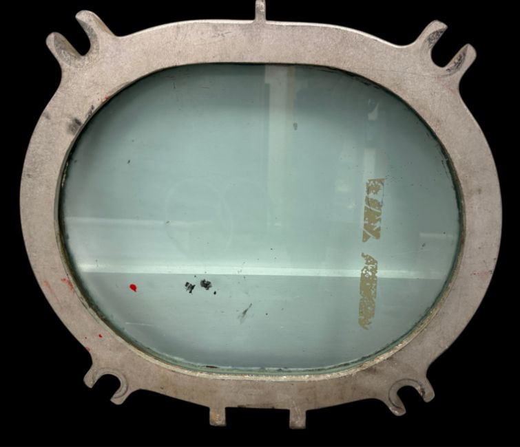 R.M.S. QUEEN ELIZABETH 2: Original Damaged porthole frame from Queen Elizabeth When the QE2 entered service she was fitted with aluminium portholes. By the early 1980s the aluminium frames started to disintegrate so they were progressively replaced by ones made of brass, the lot includes the frame and also an aluminium oval porthole, 50cms and 59cms respectively (2).