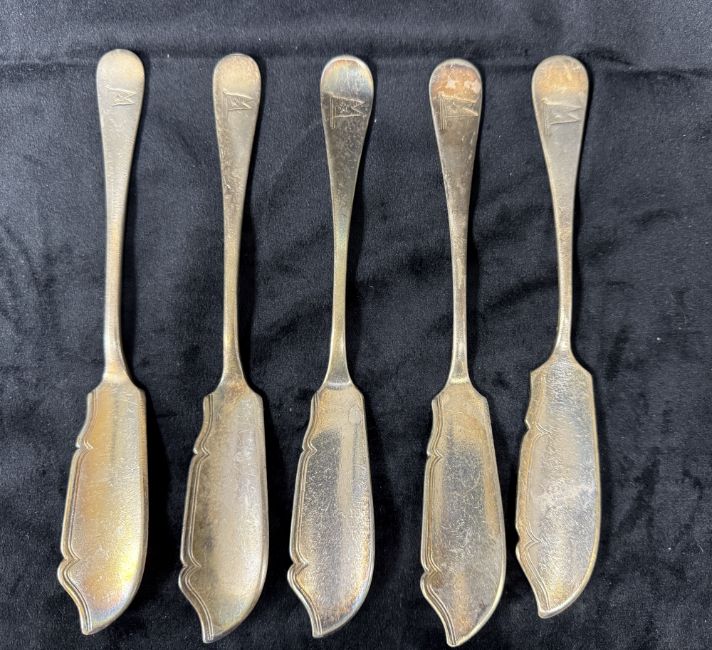 WHITE STAR LINE: Elkington plate First-Class fish knives. (5)