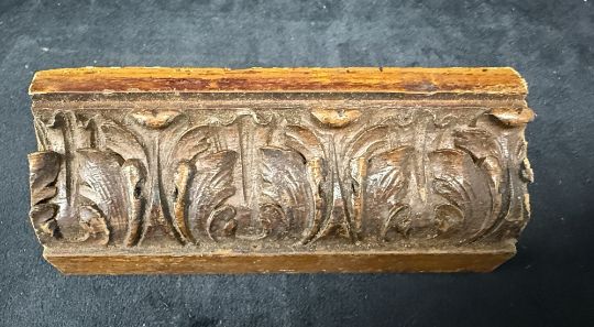 R.M.S. OLYMPIC: Original section of oak architrave heavily carved with acanthus leaves from Cabin C62 Ex-Marquis of Granby, 12.5cm.