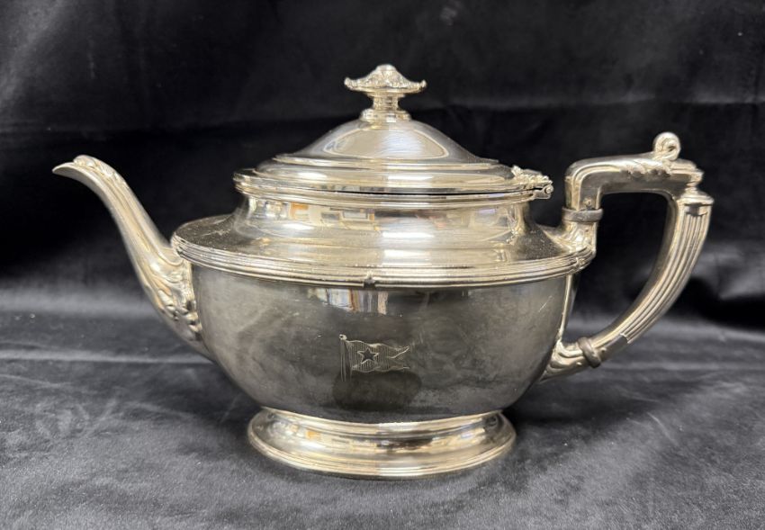 WHITE STAR LINE: Elkington Plate First-Class teapot 16cms x 27cms.