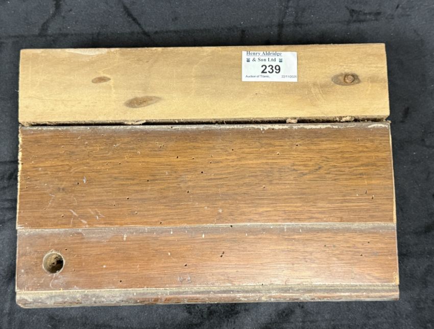 R.M.S. OLYMPIC: Satinwood skirting board section ex Marquis of Granby hotel, 25cms x 18cms.